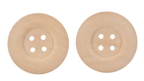 Drevený gombík zo štyrmi dierkami, priemer 6 cm. V balení 2 ks.